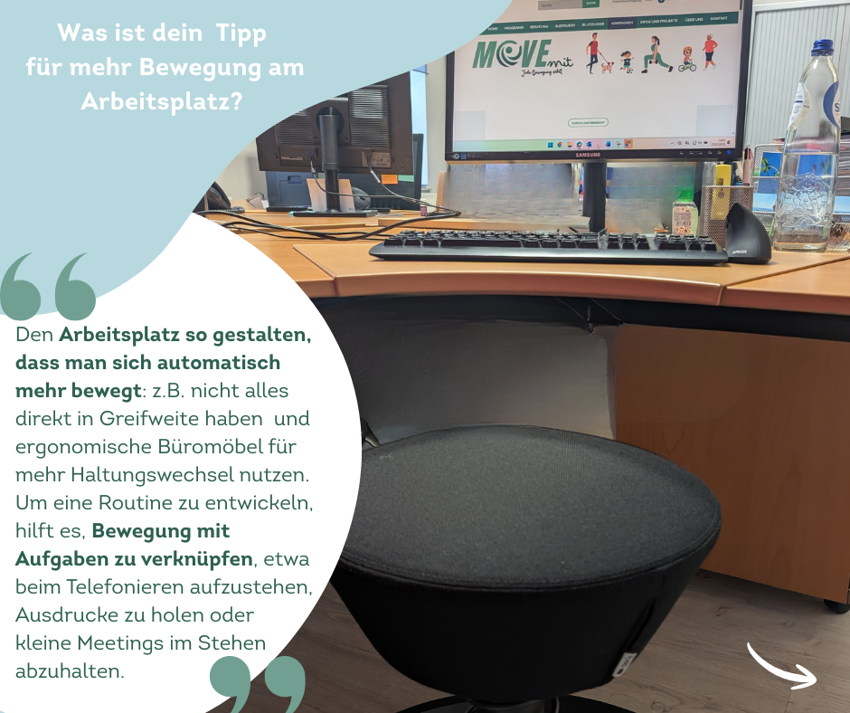 Was ist dein einfachster Tipp für mehr Bewegung am Arbeitsplatz?